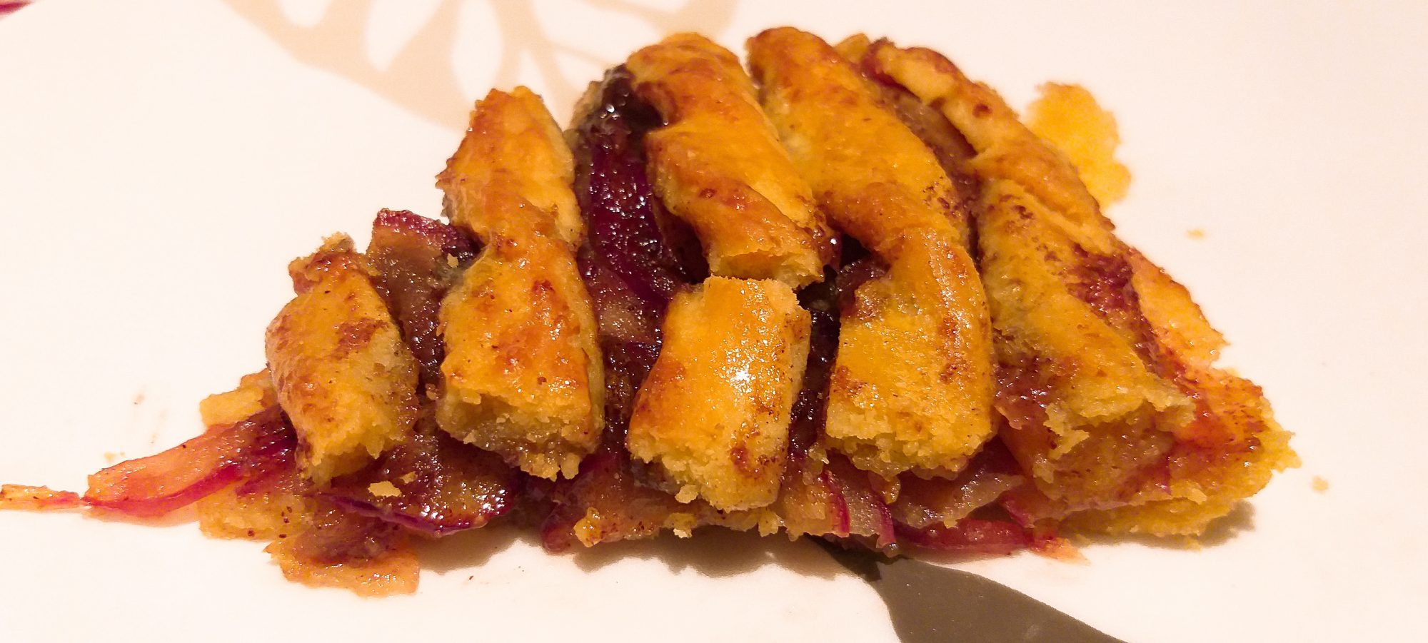 Podemos cortar tiras y ponerlas encima como un enrejado o en espiral como hice yo. PERO hay que asegurarse que estén bien adheridas al borde de la masa que está debajo, porque sino se van a despegar cuando se encojan en el horneado.